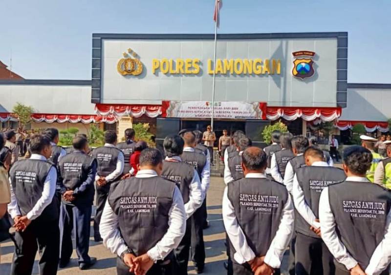 Senin (2/9/2019) satgas anti judi itu dikukuhkan Kapolres Lamongan, AKBP Feby DP Hutagalung di halaman Mapolres Lamongan. Sebanyak 250 personil disiapkan untuk memberantas perjudian pilkades.