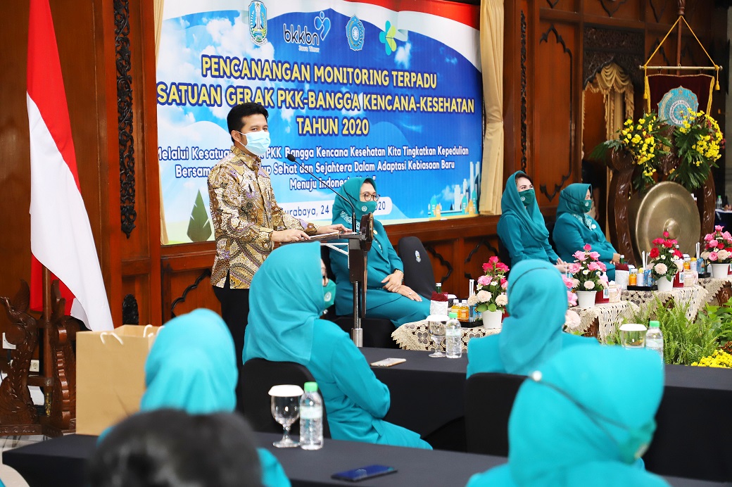 KLIKJATIM.Com | Surabaya - Tim Pengerah PKK Jawa Timur menjadi organ yang efektif untuk ikut menekan penyebaran Covid-19. Tugas monitoring juga dilakukan dengan pembentukan Kesatuan Gerak PKK-Bangga Kencana Kesehatan Tahun 2020. "Gerakan bangga kencana ini merupakan wujud yang sangat penting untuk bersama-sama menanggulangi kasus Covid-19 di Jatim. Terlebih ditunjang dengan pelaksanaan Monitoring Terpadu di setiap daerah untuk memutus penyebaran Covid-19," kata Wakil Gubernur Jatim Emil Elestianto Dardak di Gedung Bhinaloka Adhikara Kantor Gubernur Jatim, Jalan Pahlawan No 110 Surabaya, Selasa (24/11/2020)
