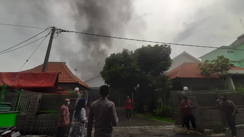 Sementara itu, Kepala Dinkes Sidoarjo drg. Syaf Satriawarman tampak di lokasi kejadian. Syaf terlihat membantu mengeluarkan barang-barang yang bisa diselamatkan. Dari salah satu karton yang terbakar, terlihat tulisan masker bantuan Kemenkes RI.