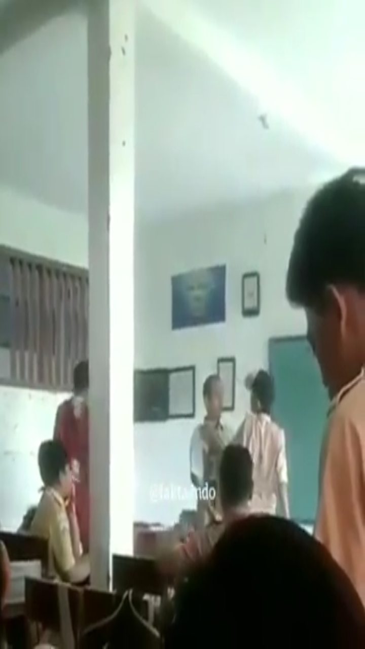 Nampak di video berdurasi 54 detik itu seorang pelajar berinisial AA (15) melawan gurunya, Nur Kalim setelah ditegur. Baju sang guru ditarik dan lehernya pun dicekik.