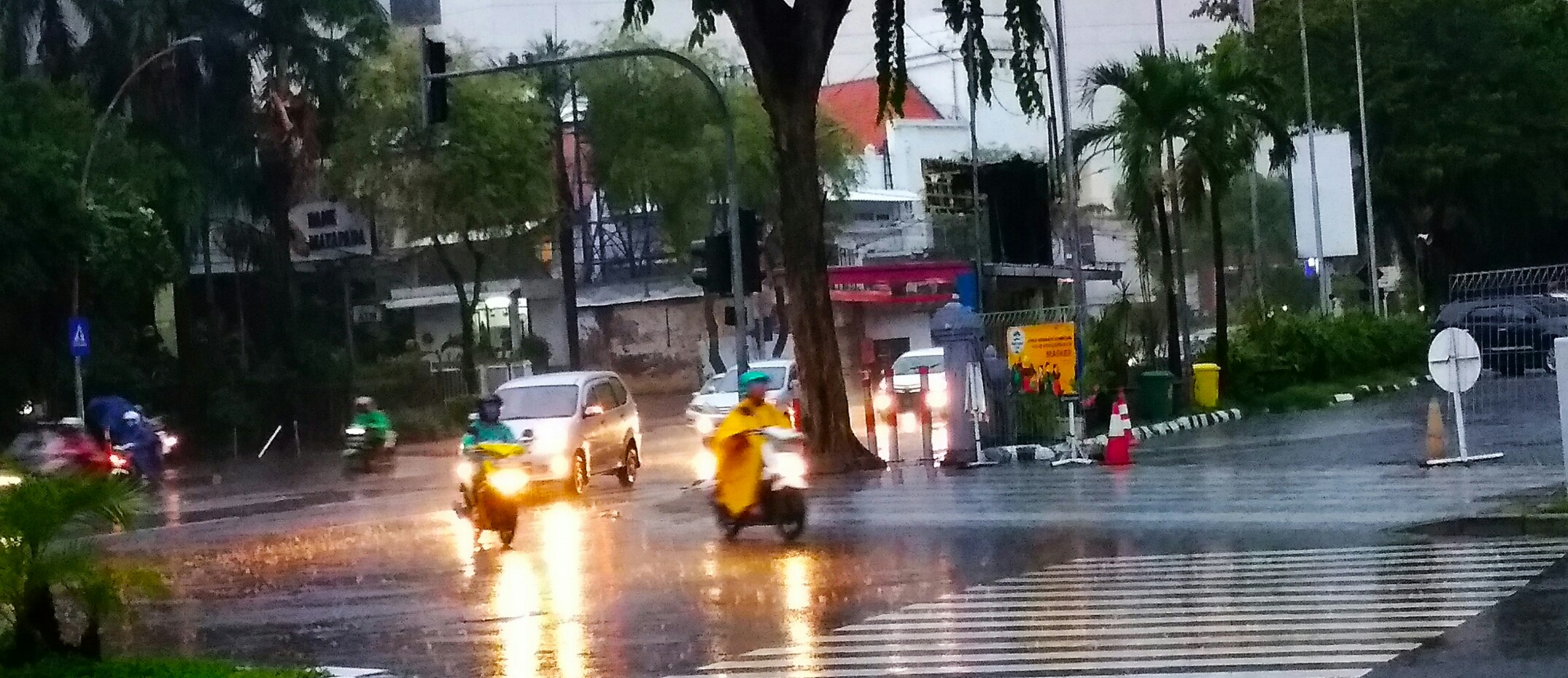 Selain jarak pandang yang terbatas akibat curah hujan, kondisi jalanan pun menjadi licin. Belum lagi jika ada angin kencang. Hal ini membuat pengendara motor harus selalu waspada dan hati-hati saat berkendara.