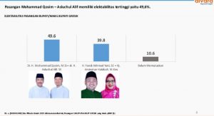 "Pasangan Mohammad Qosim–Asluchul Alif memperoleh elektabilitas sebesar 49,6%,, mengungguli pasangan Fandi Akhmad Yani–Aminatun Habibah dengan perolehan elektabilitas 39,8%. Sementara responden yang belum memutuskan sebesar 10,6%," kata Hasanudin seperti dikutip okezone.