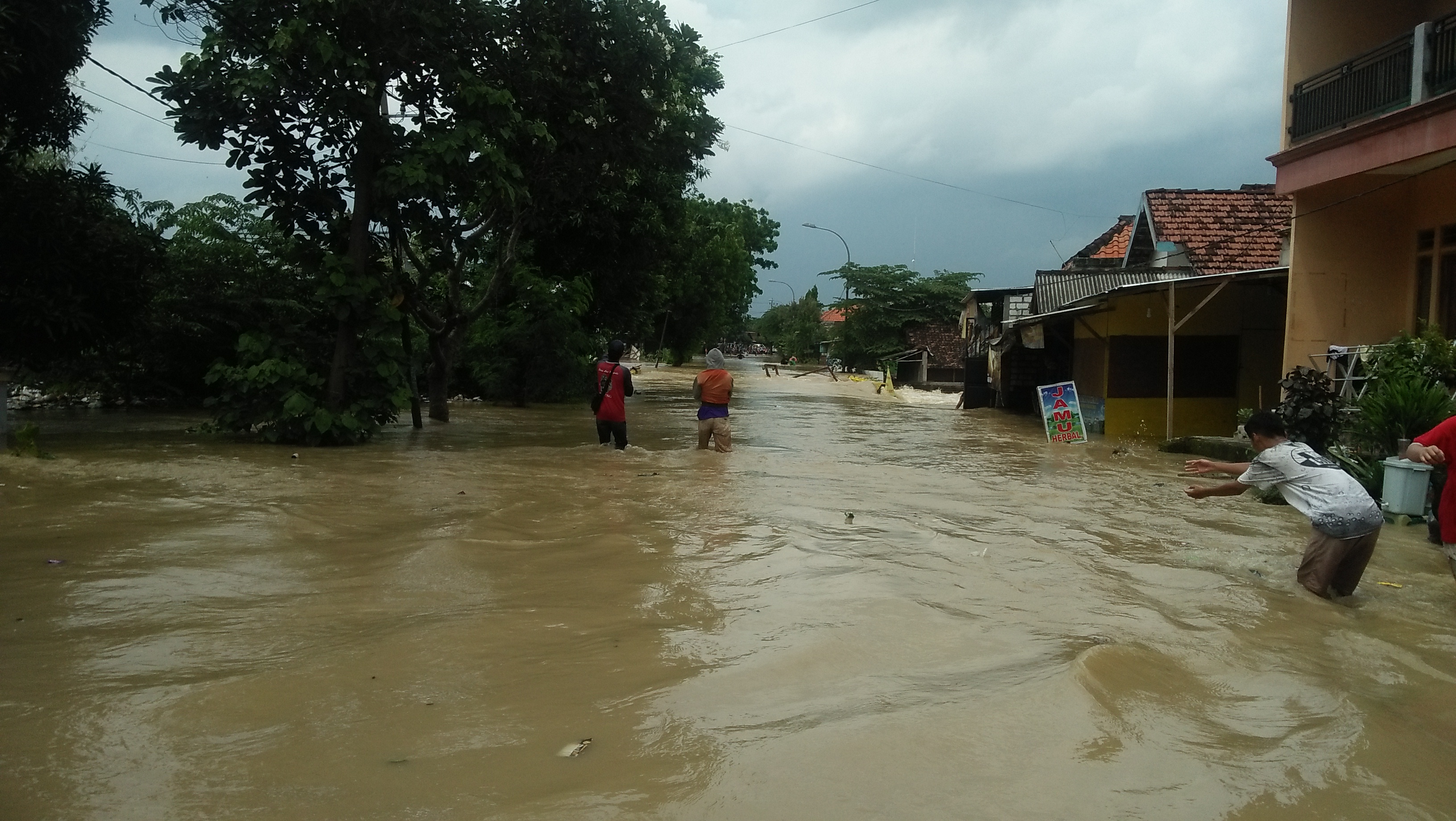 KLIKJATIM.Com | Gresik--Banjir luapan Kali Lamong di Kabupaten Gresik makan korban. Dua remaja terseret arus, satu korban meninggal dunia.