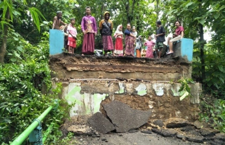 KLIKJATIM.Com | Sampang - Akses warga di Kecamatan Tambelangan-Banyuates, Kabupaten Sampang Madura terputus. Pasalnya jembatan penghubung dua kecamatan yang berada di Dusun/Desa Somber, Tambelangan telah ambruk pada Minggu (13/12/2020) kemarin.