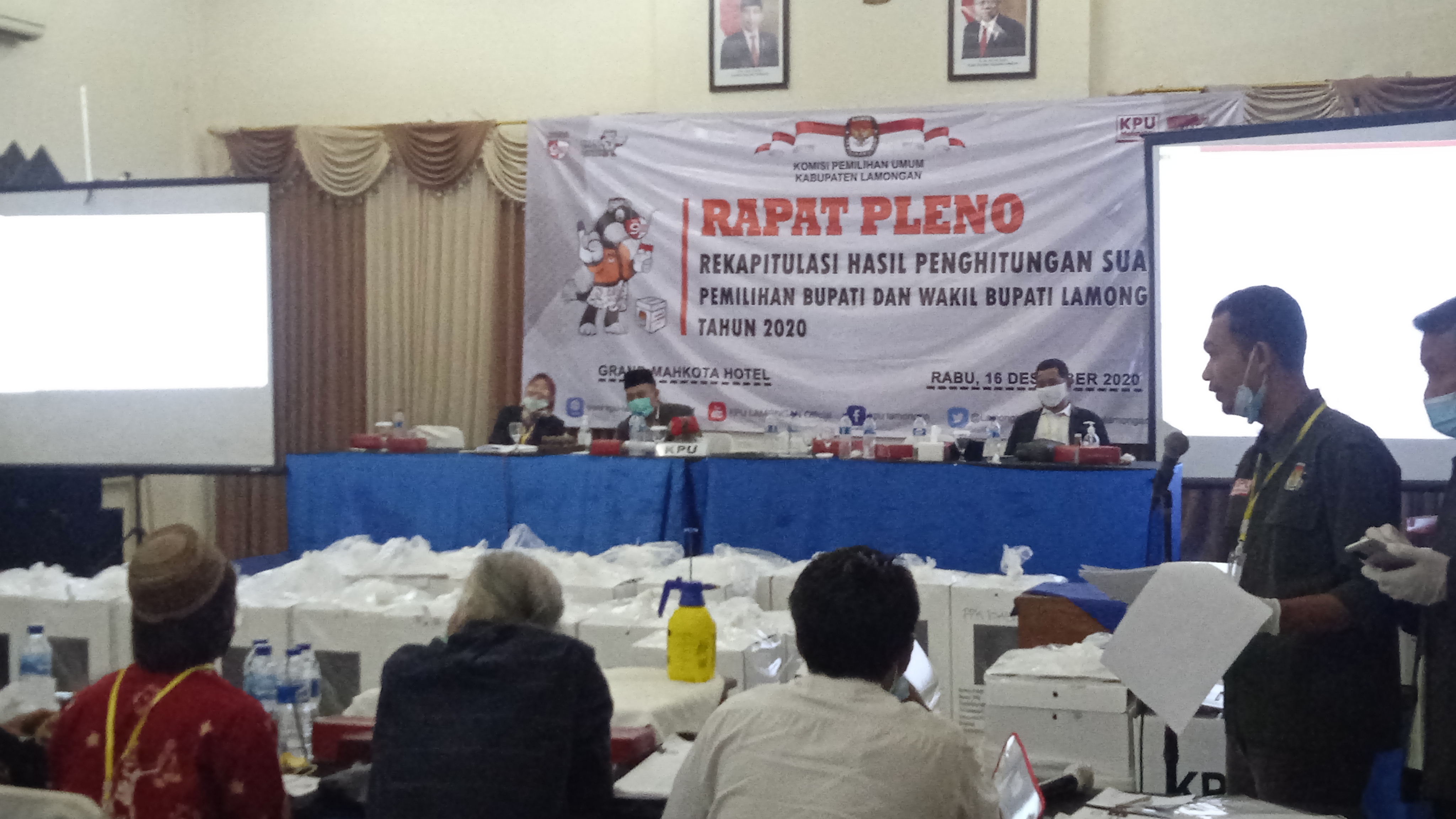 KLIKJATIM.Com | Lamongan—Sempat diperkirakan molor, rekapitulasi tingkat kabupaten hasil pemungutan suara Pilkada Lamongan rampung pukul 11.00 WIB, Kamis (17/12/2020). Yuhronur-Rouf dinyatakan sebagai pemenang dengan mengantongi 336.154 suara warga Lamongan.