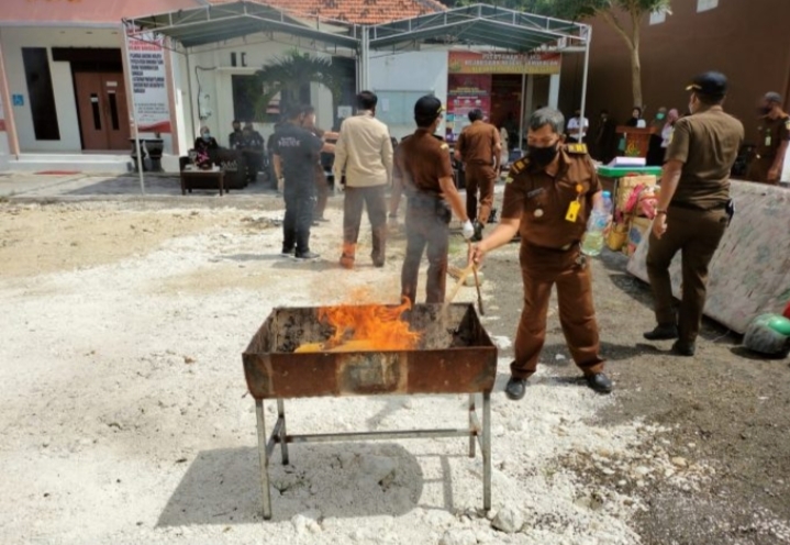 KLIKJATIM.Com | Bangkalan - Narkotika jenis sabu dengan berat 1,5 kilogram (Kg) di Bangkalan, Madura dibakar. Hal ini dilakukan dalam rangka pemusnahan barang bukti (BB) kasus peredaran gelap narkoba selama tahun 2020 oleh Kejaksaan Negeri (Kejari) Bangkalan.