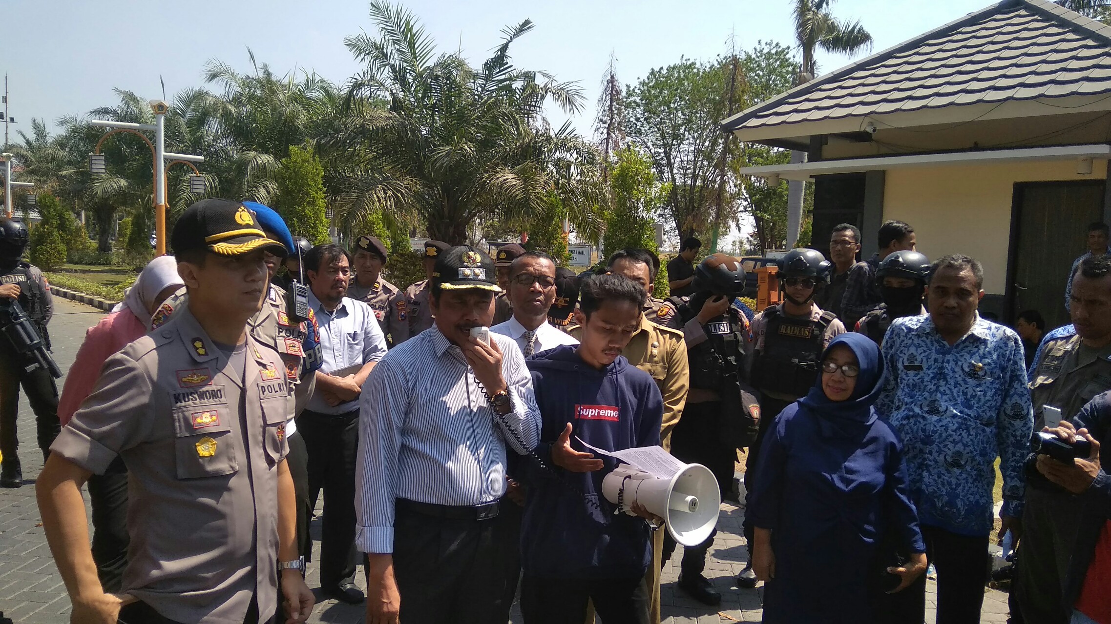 Selain itu, massa juga menuntut agar aparat keamanan tidak lagi melakukan tindakan represif terhadap massa aksi saat menyuarakan pendapatnya. Ratusan mahasiswa itu ditemui Wabup Gresik Moh Qosim dan Kapolres Gresik AKBP Kusworo Wibowo.