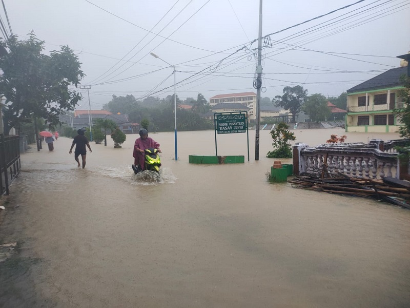 “Arus sungai dari sungai Kebun Agung dan sungai besar meluap ke Jalan Raya Lingkar Bawean, sawah dan rumah di Desa Lebak. (Ketinggian) airnya selutut orang dewasa, yaitu sekitar 50 centimeter,” katanya kepada klikjatim.com.