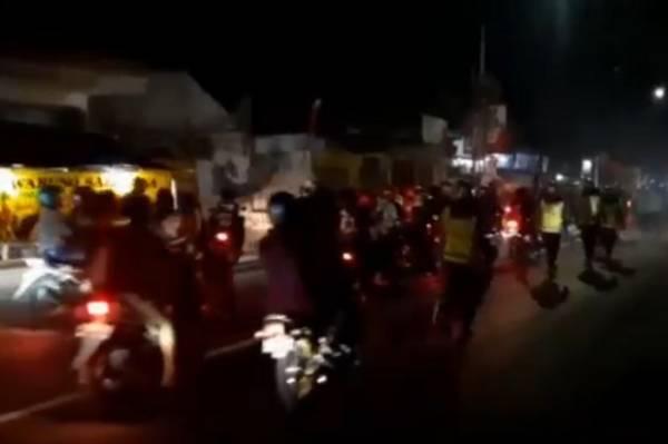 KLIKJATIM.Com | Mojokerto - Ratusan orang anggota perguruan silat berkeliling jalanan di Kecamatan Dawarblandong, Kabupaten Mojokerto, Kamis (21/1/2021). Mereka diduga mencari pelaku penganiayaan salahsatu anggotanya belum lama ini.