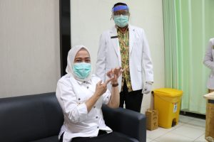 KLIKJATIM.Com | Bojonegoro—Vakisnasi covid-19 di Kabupaten Bojonegoro telah dimulai, Kamis (28/1/2021). Bertempat di RSUD Sosodoro Djatikusumo, Bupati Bojonegoro Anna Muawanah mengawali sebagai orang yang pertama divaksin.