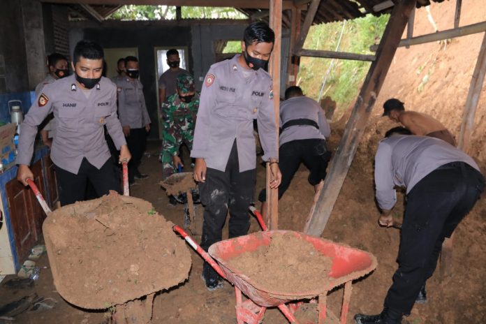 KLIKJATIM.Com I Madiun - Bencana tanah longsor di Dusun Poleng Desa Cermo Kecamatan Kare Kabupaten Madiun mendapatkan perhatian Polres Madiun, Senin (15/2/2021).