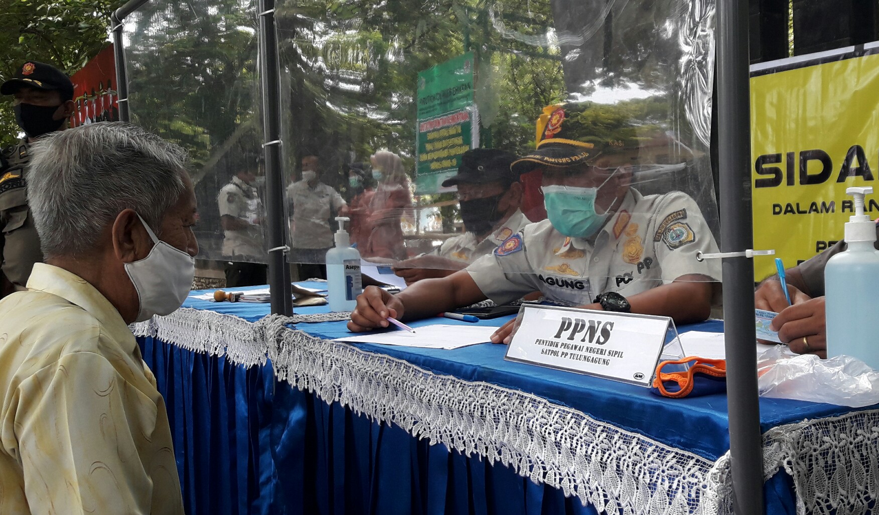 “Kita tidak menyita KTP-nya lo, ya, tapi menjadikannya jaminan agar memenuhi tanggung jawabnya menjalankan sanksi, baik itu sanksi denda maupun kerja sosial, setelah sanksinya dijalani ya KTP nya kita kembalikan,” ujarnya, Senin (15/2/2021).