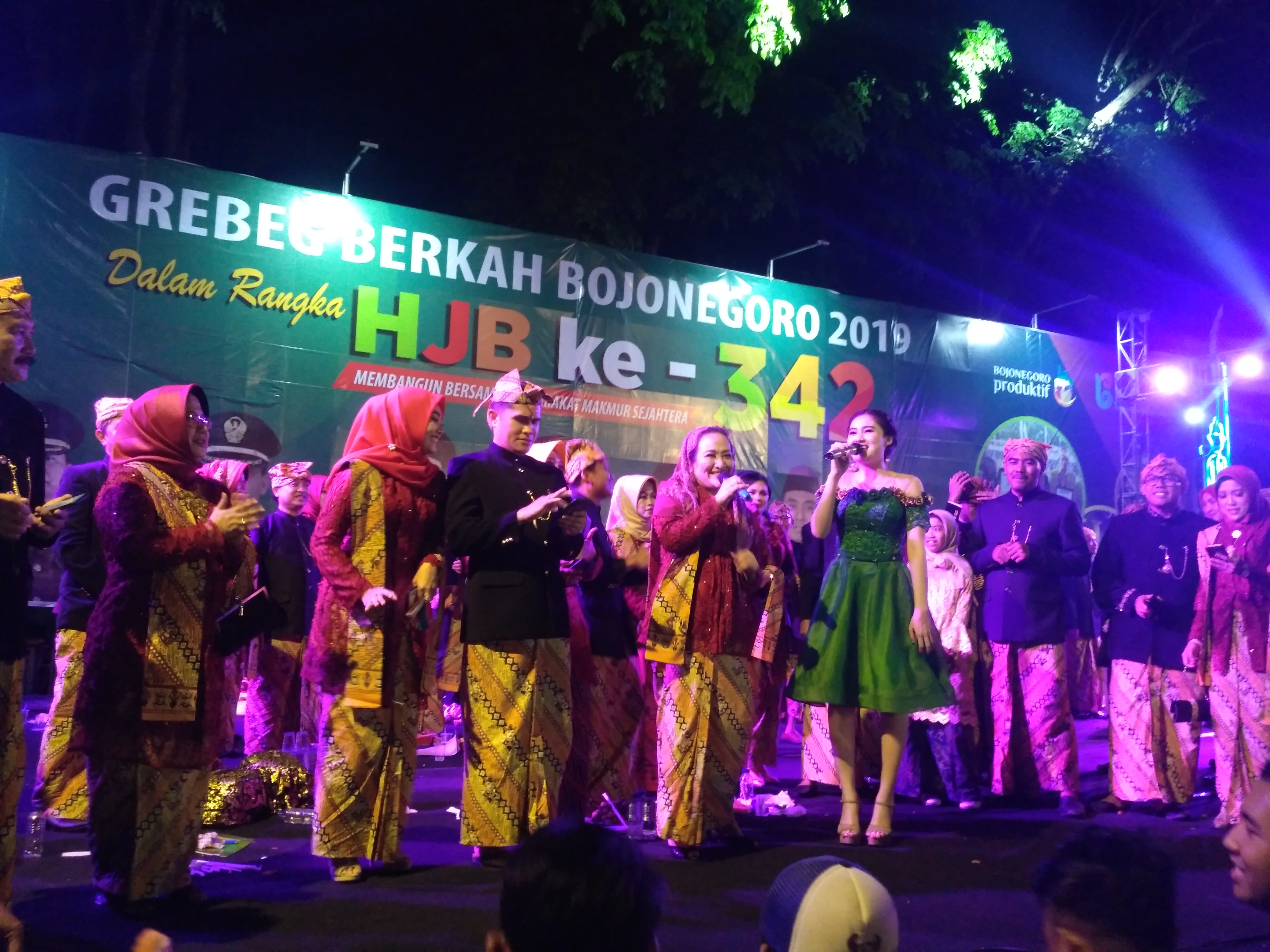 Sebelumnya, malam puncak Hari Jadi Bojonegoro (HJB) ke-342 tahun 2019 lebih dulu dilakukan grebek berkah Bojonegoro atau rebutan gunungan kaya praja. Kegiatan grebek berkah diawali dengan prosesi penyerahan api semangat (api abadi) yang dibawa oleh Ketua DPRD Bojonegoro Imam Solikin untuk di arak ke pendopo. Lalu api semangat diserahkan kepada Bupati Bojonegoro Anna Muawanah, untuk di semayamkan di pendopo Bojonegoro.