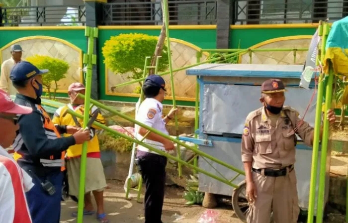 KLIKJATIM.Com | Sampang—Satuan Polisi Pamong Praja (Satpol PP) Kabupaten Sampang, Madura, Jawa Timur bersama petugas gabungan akhirnya melakukan langkah tegas terhadap pedagang kaki lima (PKL) yang membandel tetap berjualan di Jalan Sikatan sekitar Pasar Srimangunan. Tenda yang digunakan para PKL itu dibongkar.