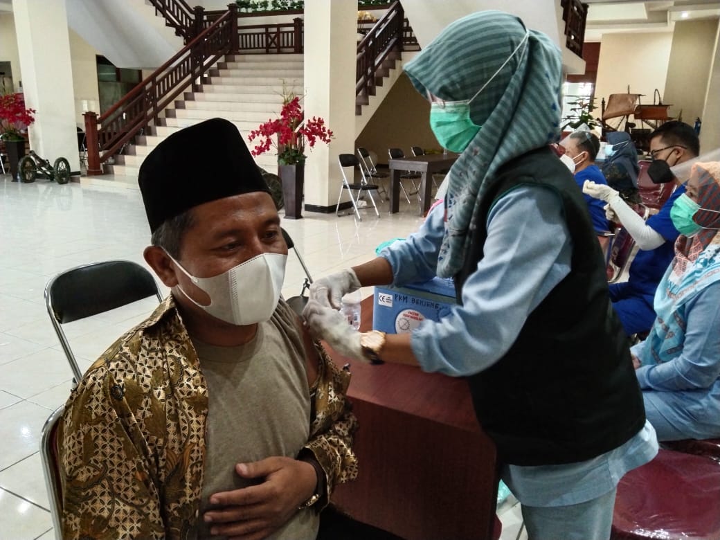 KLIKJATIM.Com | Gresik — Sekitar 1200 tokoh agama yang terdiri dari imam masjid, ulama dan kiai di Gresik mendapat vaksin Covid-19. Dosis pertama disuntikan di kantor Bupati Gresik dan sejumlah puskesmas. “Tentu kami mengucapkan terima kasih kepada bapak bupati dan ibu wakil bupati sehingga vaksinasi untuk imam masjid ini terselenggara dengan baik,” kata Ketua DMI Gresik Zainal Abidin , Sabtu (6/3/2021).