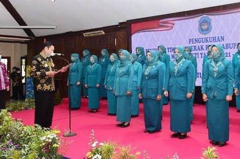 KLIKJATIM.Com | Lamongan - Bupati Lamongan Yuhronur Efendi melantik Tim Penggerak Pemberdayaan dan Kesejahteraan Keluarga (TP PKK), Kabupaten Lamongan, Jumat (12/3/2021). Dalam pelantikan ini, Bupati Lamongan menyebut TP PKK merupakan mitra strategis dalam mensuskseskan pembangunan.