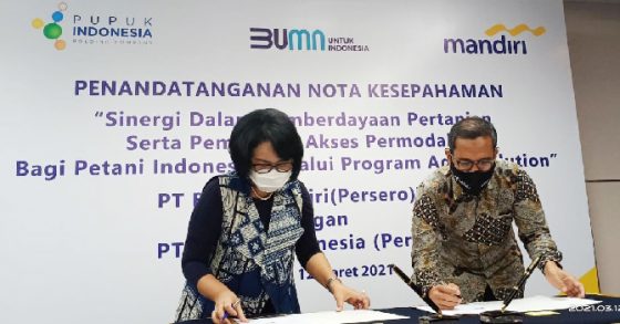 Adapun Nota Kesepahaman (MoU) ditandatangani oleh Direktur Corporate Banking Bank Mandiri Susana Indah Kris Indriati dan Direktur Pemasaran Pupuk Indonesia Gusrizal di Jakarta, Jumat (12/3/2021).