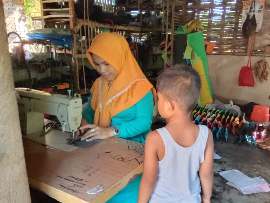 Di bawah kaki Gunung Peromaan, ibu tiga anak itu memproduksi sandal setiap harinya. Dia dibantu tiga karyawan dalam memenuhi pesanan perseorangan ataupun penjual yang biasanya mengambil secara grosir. "Penjualan sandal sudah cukup lama. Wilayah yang paling jauh Malaysia," ujarnya sambil senyum.
