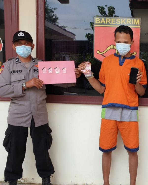 Saat dilakukan penangkapan, tersangka sempat membuat sebagian barang bukti (BB) sabu ke sungai. Tetapi, ketika dilakukan penggeledahan di rumah tersangka telah ditemukan empat paket slip sabu. Beratnya 3,04 gram beserta timbangan digital yang menjadi barang bukti.