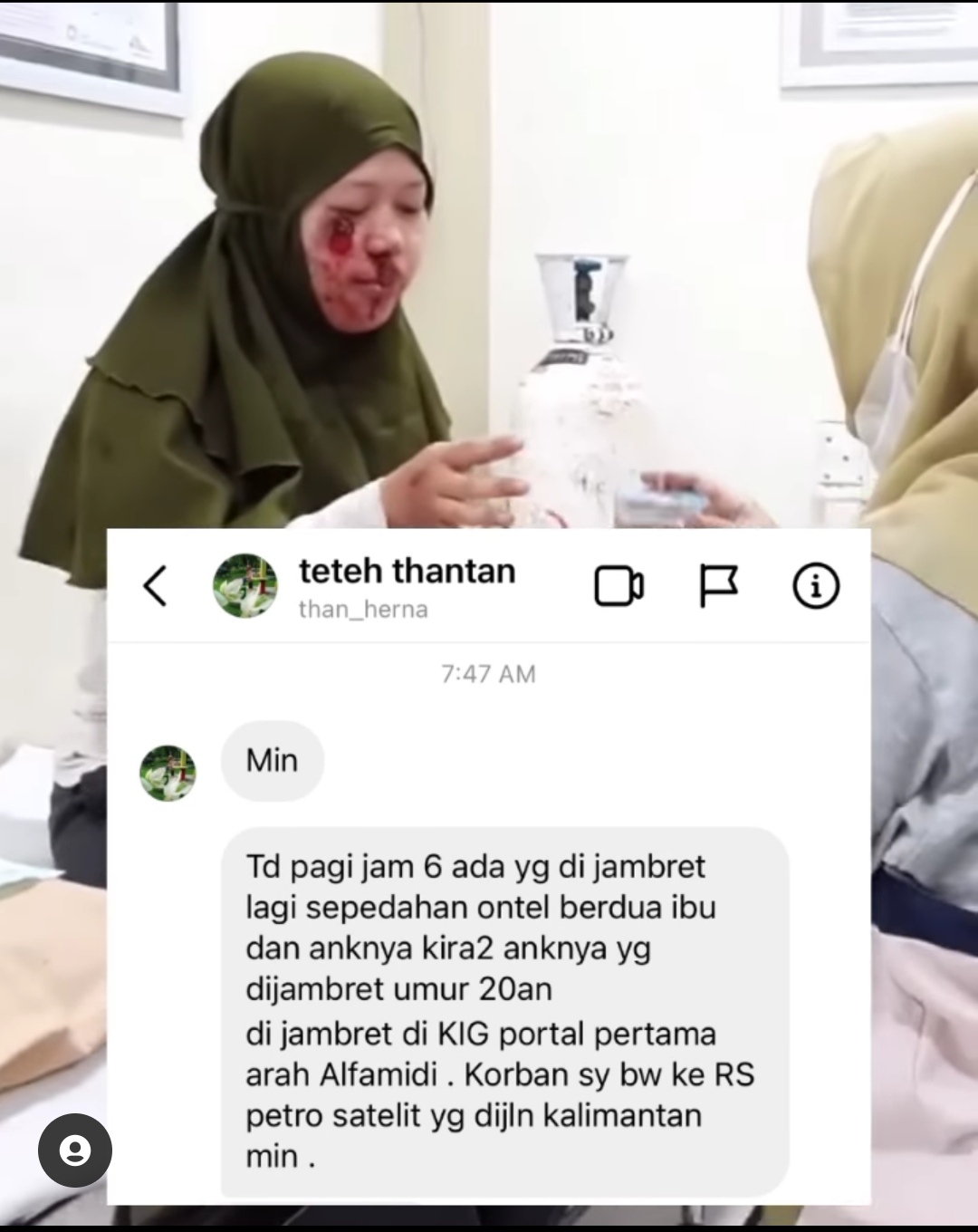 Herna pun bergegas mengevakuasi korban ke Rumah Sakit terdekat. Sebab, salah seorang korban mengalami luka serius dibagian kepala. “Harus lebih waspada saat berolahraga. Tidak perlu membawa barang-barang berharga,” pesannya.