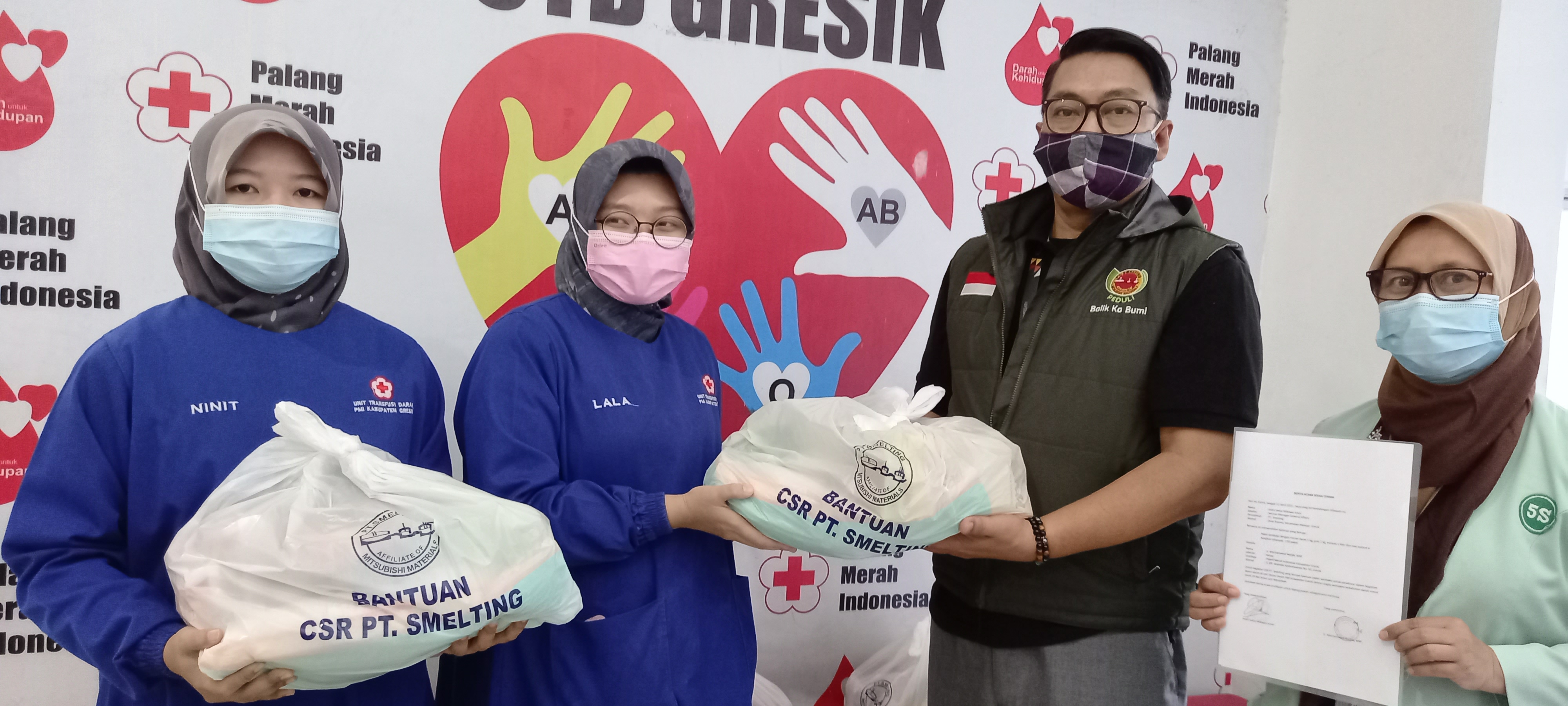 Untuk mendukung dan menarik minat masyarakat mendonorkan darahnya, PT Smelting menyalurkan bantuan paket sembako kepada PMI Gresik, yang nantinya akan dihadiahkan kepada pendonor.