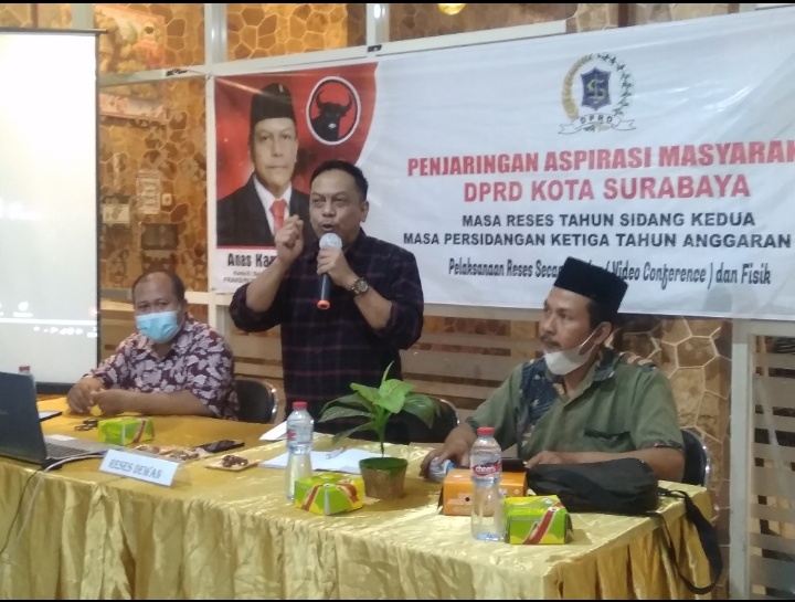 KLIKJATIM.Com | Surabaya - Anggota Komisi B DPRD Surabaya, Anas Karno disambati beberapa masalah oleh warga Kecamatan Tenggilis Mejoyo dalam masa reses sidang kedua tahun anggaran 2021, Rabu (5/5/2021).