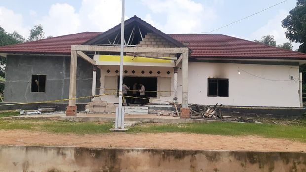 Kondisi Polsek Candipuro usai dibakar massa.