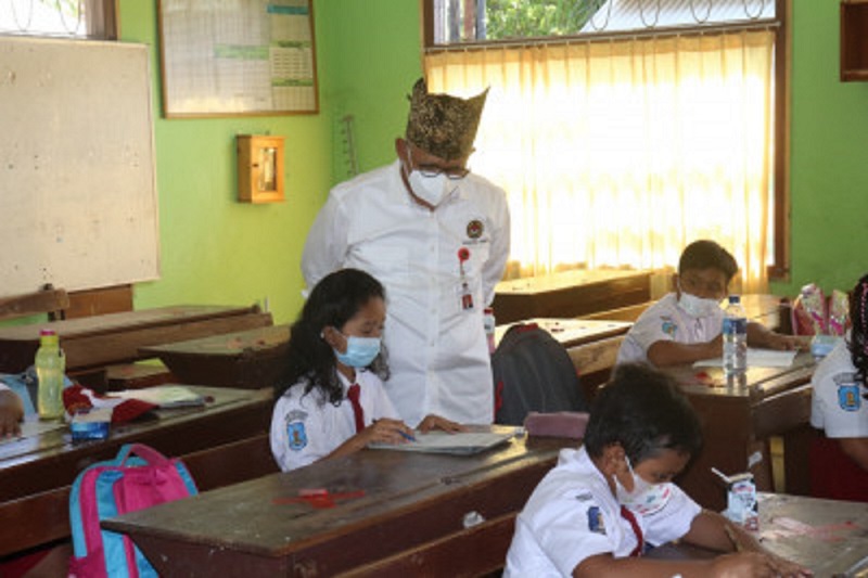 KLIKJATIM.Com | Banyuwangi—Kemenko Bidang Pembangunan Manusia dan Kebudayaan (Kemenko PMK) melakukan monitoring dan evaluasi proses pembelajaran tatap muka (PTM) terbatas di masa pandemi di Banyuwangi. Deputi Bidang Koordinasi Kualitas Pendidikan dan Moderasi Beragama, Kemenko PMK, Agus Sartono langsung meninjau pelaksanaan PTM di SDN 4 Pengajuran dan SMPN 3 Banyuwangi.
