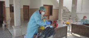 Petugas medis puskesmas Cerme saat melakukan swab antigen di Balai Desa Gedangkulud Kecamatan Cerme Kabupaten Gresik[/caption]