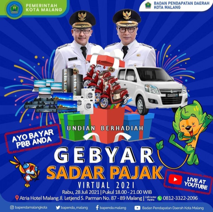 “Masyarakat Kota Malang dapat menyaksikan Gebyar Sadar Pajak dengan undian berhadiah atas NOP PBB tahun 2021 yang telah lunas, pada kanal youtube,” tuturnya.