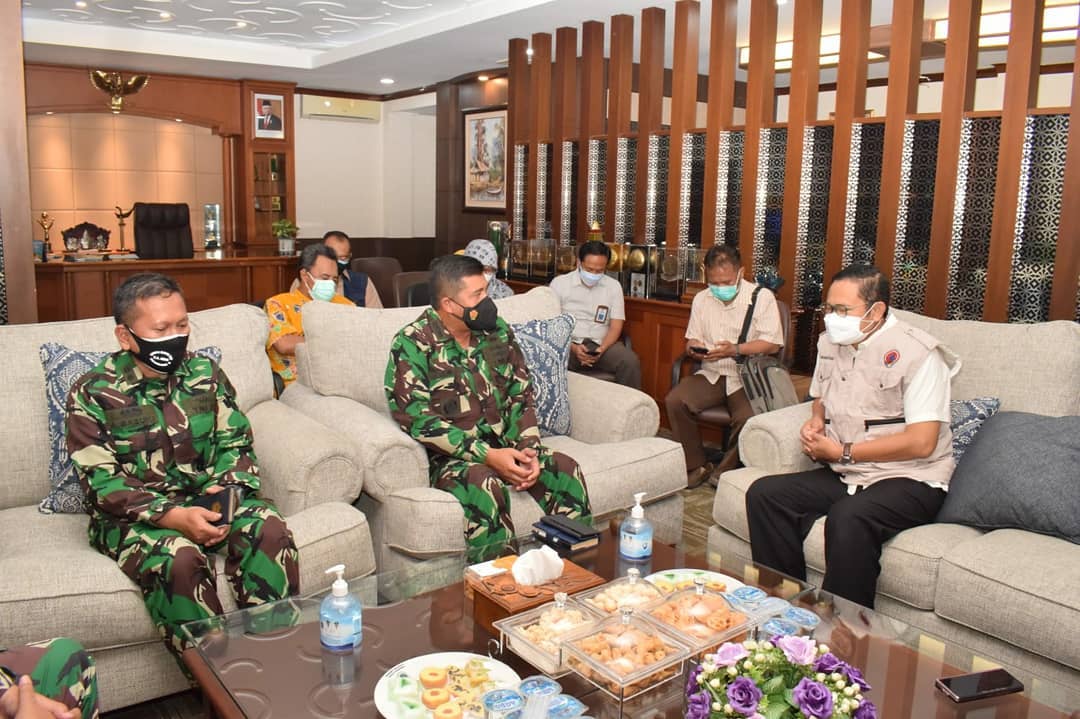 Terkait pelaksanaan serbuan vaksinasi Covid-19 di Kabupaten Lamongan yang diselenggarakan TNI Angkatan Laut, Bupati Lamongan Yuhronur Efendi bersama Komando Armada II TNI AL Surabaya yang dipimpin Asisten Potensi Maritim Koarmada II, Kolonel Laut (P) Albertus Agung Priyo S melakukan audiensi di ruang kerja bupati, Senin (12/7/2021).