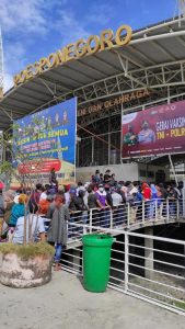 Kerumunan warga yang hendak vaksin di WEP memanjang tanpa ada jaga jarak.[/caption]