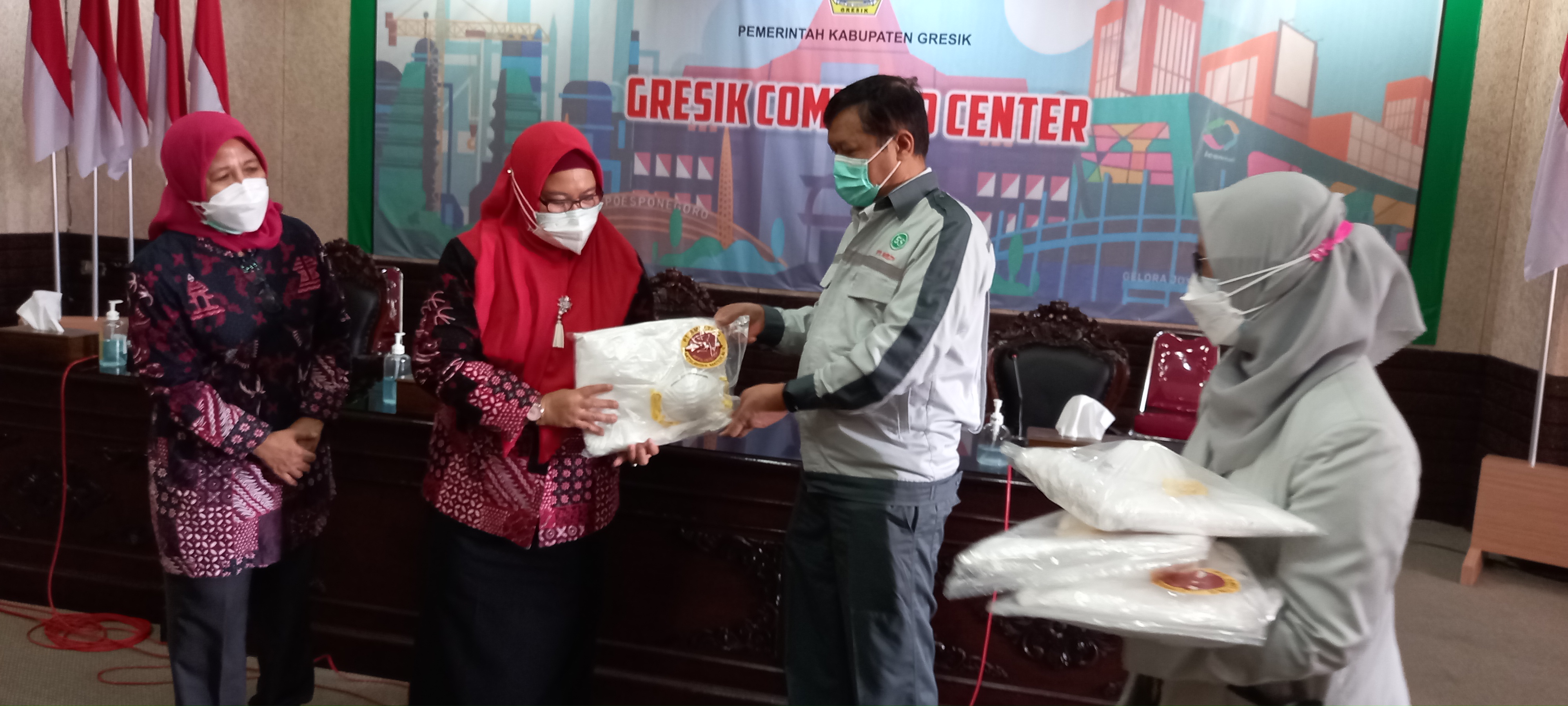 KLIKJATIM.Com | Gresik — Pemkab Gresik kembali menerima bantuan alat pelindung diri (APD) dari swasta, kali ini perusahaan pemurnian konsentrat penghasil tembaga, yakni PT Smelting menyalurkan seratus paket APD yang diterima langsung oleh Wakil Bupati Gresik Aminatun Habibah.
