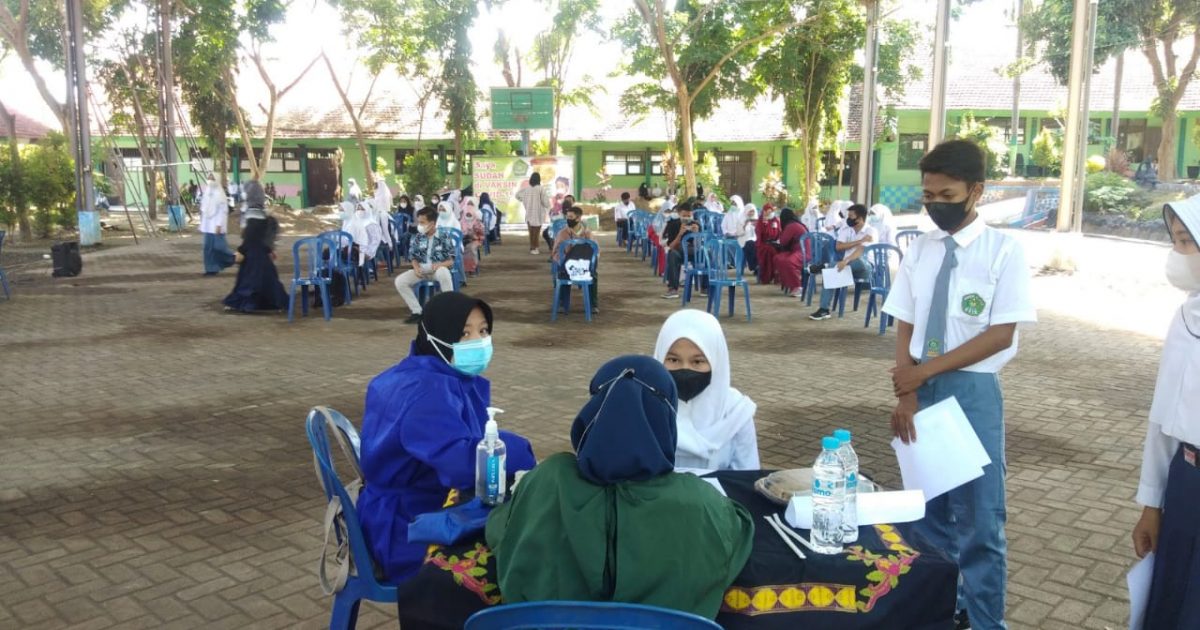 KLIKJATIM.Com | Probolinggo - Ratusan pelajar di Madrasah Aliyah Negeri (MAN) 2 Probolinggo dan Madrasah Tsanawiyah Negeri (MTsN) Probolinggo mengikuti vaksinasi yang dilakukan Puskesmas Pajarakan, Selasa (3/8/2021). Vaksinasi dipusatkan di Gelanggang Olahraga (GOR) milik madrasah di Jalan Raya Karanggeger Nomor 48 Kecamatan Pajarakan.