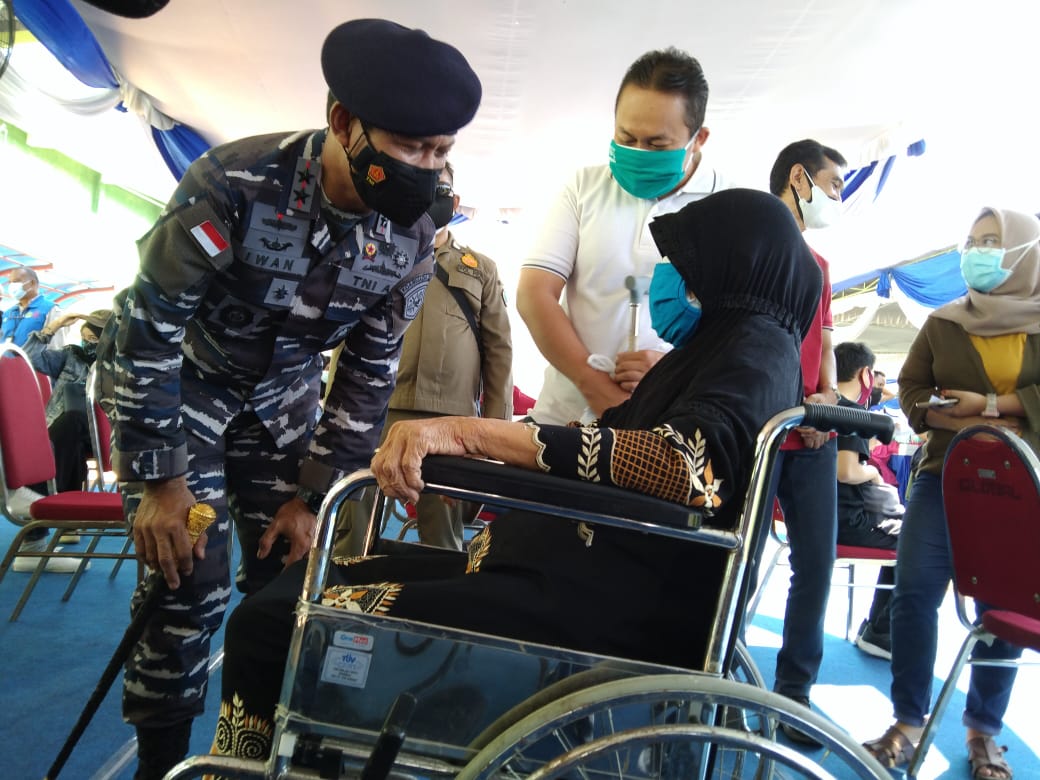 Panglima Koarmada II, Laksda TNI Dr. Iwan Isnurwanto juga terlihat sejak pagi. Selain untuk memastikan kegiatan berjalan lancer, Iwan Isnurwanto Nampak berbincang dengan masyarakat yang antri vaksinas, termasuk peserta yang datang ke lokasi dengan kursi roda.