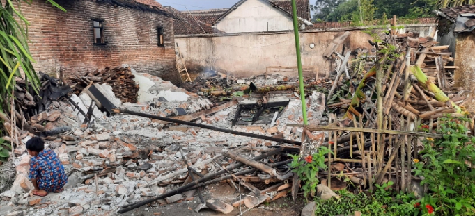 KLIKJATIM.Com I Jember - Sebuah rumah di Dusun Banjarsari, Desa/Kecamatan Umbulsari, Kabupaten Jember, Minggu (8/8/2021) terbakar dini hari. Rumah milik Sulung (60) ludes terbakar saat korban sedang di pemakaman.