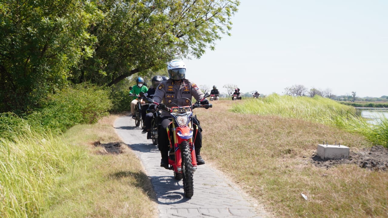 Kapolresta Sidoarjo Kombes Pol. Kusumo Wahyu Bintoro bersama Dandim 0816 Sidoarjo Letkol Inf M Iswan Nusi serta Wakil Bupati Sidoarjo Subandi terlihat menikmati perjalanan.