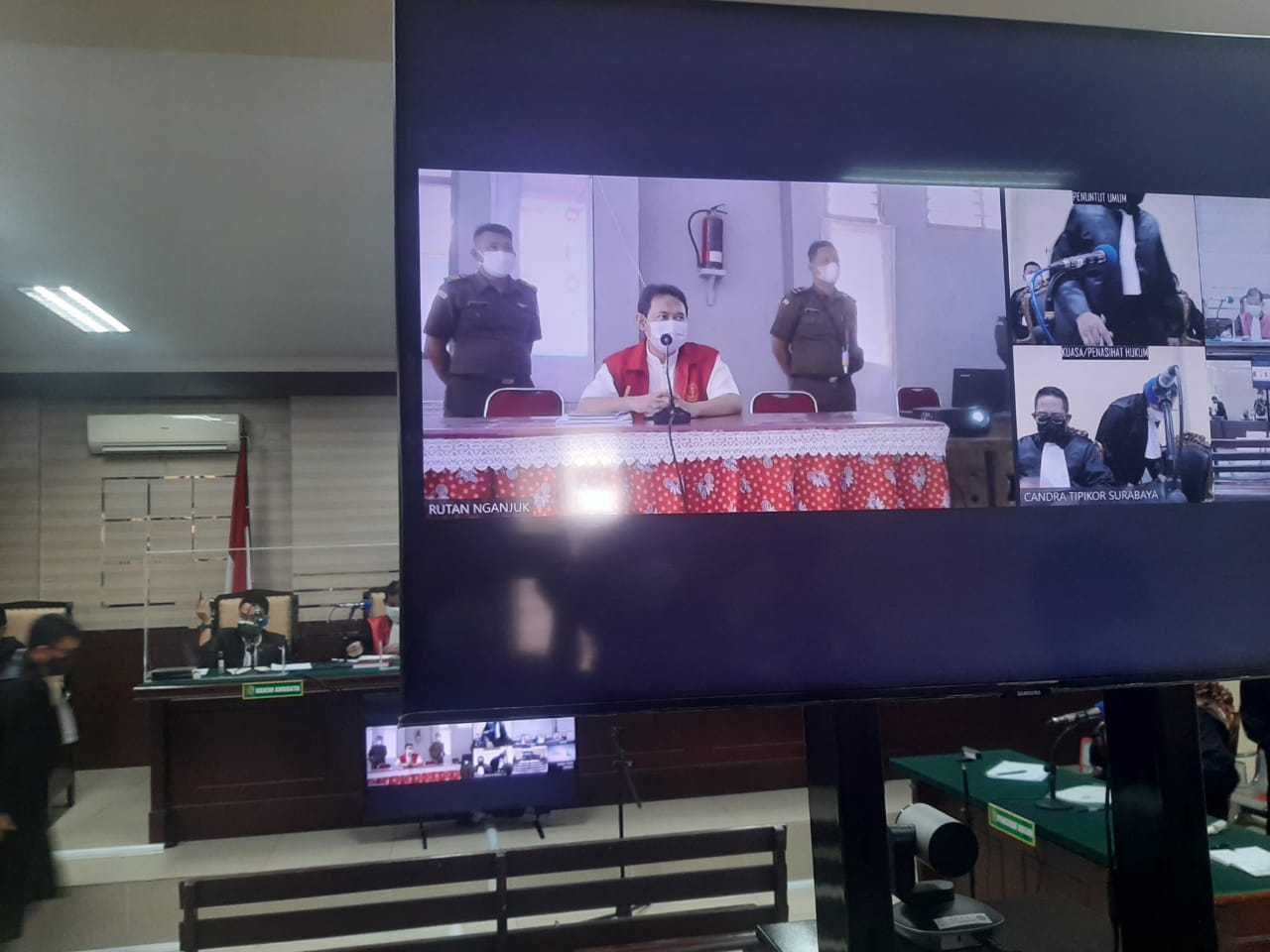 "Terdakwa melanggar Pasal 12 huruf e Undang-undang Nomor 31 tahun 1999 sebagaimana diubah dan ditambah dengan Undang-undang Nomor 20 tahun 2001 tentang Perubahan atas Undang-undang Nomor 31 tahun 1999 tentang Pemberantasan Tindak Pidana Korupsi Jo. Pasal 55 Ayat (1) Ke-1 KUHP atau Pasal 12 B atau Pasal 5 Ayat (2) Jo. Pasal 5 Ayat (1) huruf a," kata Ketua tim JPU sekaligus Kepala Kejaksaan Negeri Nganjuk Nophy Tennophero Suoth.