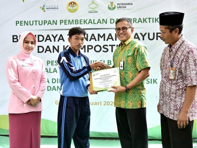 Selain mengadakan pelatihan, Petrokimia Gresik juga memberikan sertifikat dan bantuan berupa 100 pot tanaman serta uang tunai Rp15 juta untuk modal praktik komposting dan berkebun di sekolah. (nul/hen)