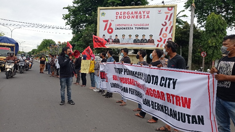 Karena itu, Forkot menggelar aksi unjuk rasa ke kantor Bupati Gresik menuntut penghentian proyek tersebut lantaran belum mengantongi izin sama sekali, Selasa (21/9/2021).
