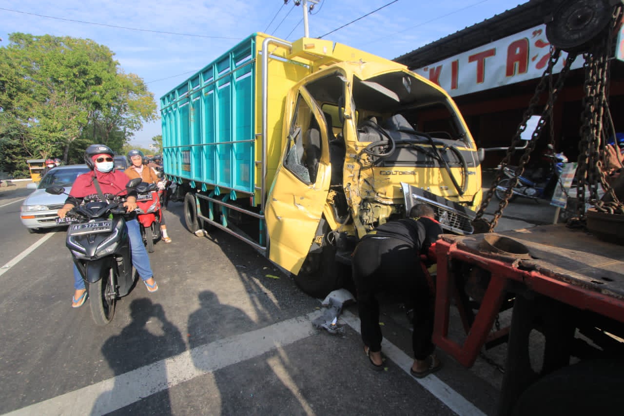 Evakuasi korban pun berlangsung dramatis. Pasalnya, korban sopir truk harus tercepit pintu sebelum berhasil dibawa ke Rumah Sakit Umum Daerah (RSUD) dr Harjono.