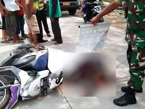 "Setelah itu (korban) langsung terjatuh, kemudian ditabrak truk dari belakang," ujar Ipda Sudibyo.