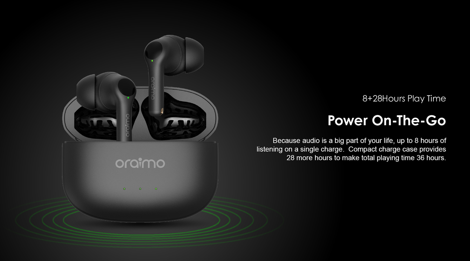 Oraimo Freepods 3 TWS memiliki masa pakai baterai yang lebih lama dari sebelumnya. Dapat digunakan hingga 5,5 jam waktu bicara atau 8 jam waktu pemutaran musik hanya dengan sekali pengisian daya. Casing Oraimo Freepods 3 TWS sendiri dapat memasok daya hidup tambahan selama 28 jam.