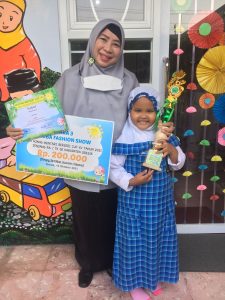 Siswa berprestasi KB-TK YIMI Gresik saat bersama Kepala Sekolah Kristantin (Faiz/klikjatim.com)[/caption]