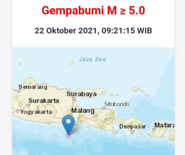 KLIKJATIM.Com | Malang - Kabupaten Malang dan sejumlah wilayah di Jatim Selatan diguncang gempa berkekuatan 5,3 skala richter (SR) pada Jumat (22/102/2021) pagi.