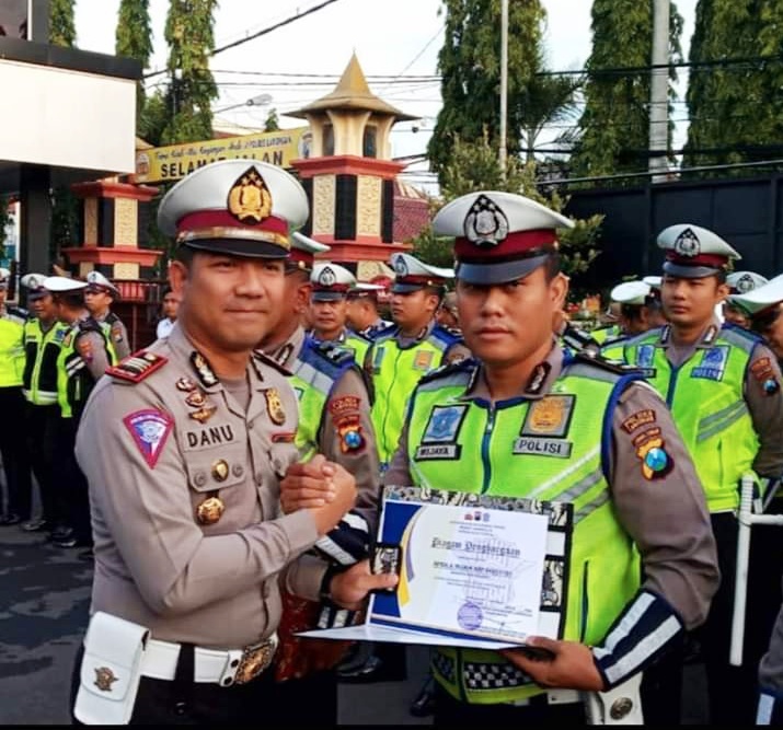 KLIKJATIM.COM | Lamongan--Sejumlah anggota Satlantas Polres Lamongan mendapatkan penghargaan khusus, Senin (3/2/2020). Mereka dinilai memiliki kinerja baik selama menjalankan tugas sebagai polisi.