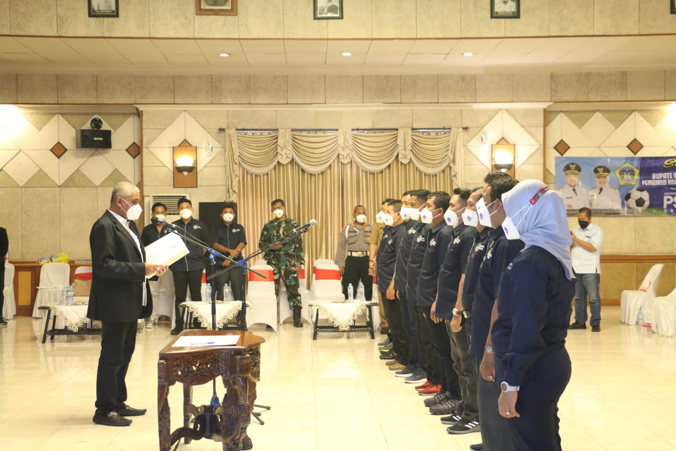 KLIKJATIM.Com | Gresik - Ketua Asosiasi Provinsi (Asprov) PSSI Jatim Ahmad Riyad mengukuhkan kepengurusan Askab PSSI Gresik, Senin (25/10/2021). Pengukuhan yang dihadiri Wabup Gresik Hj Aminatun Habibah ini digelar di Kantor Bupatkli Gresik.