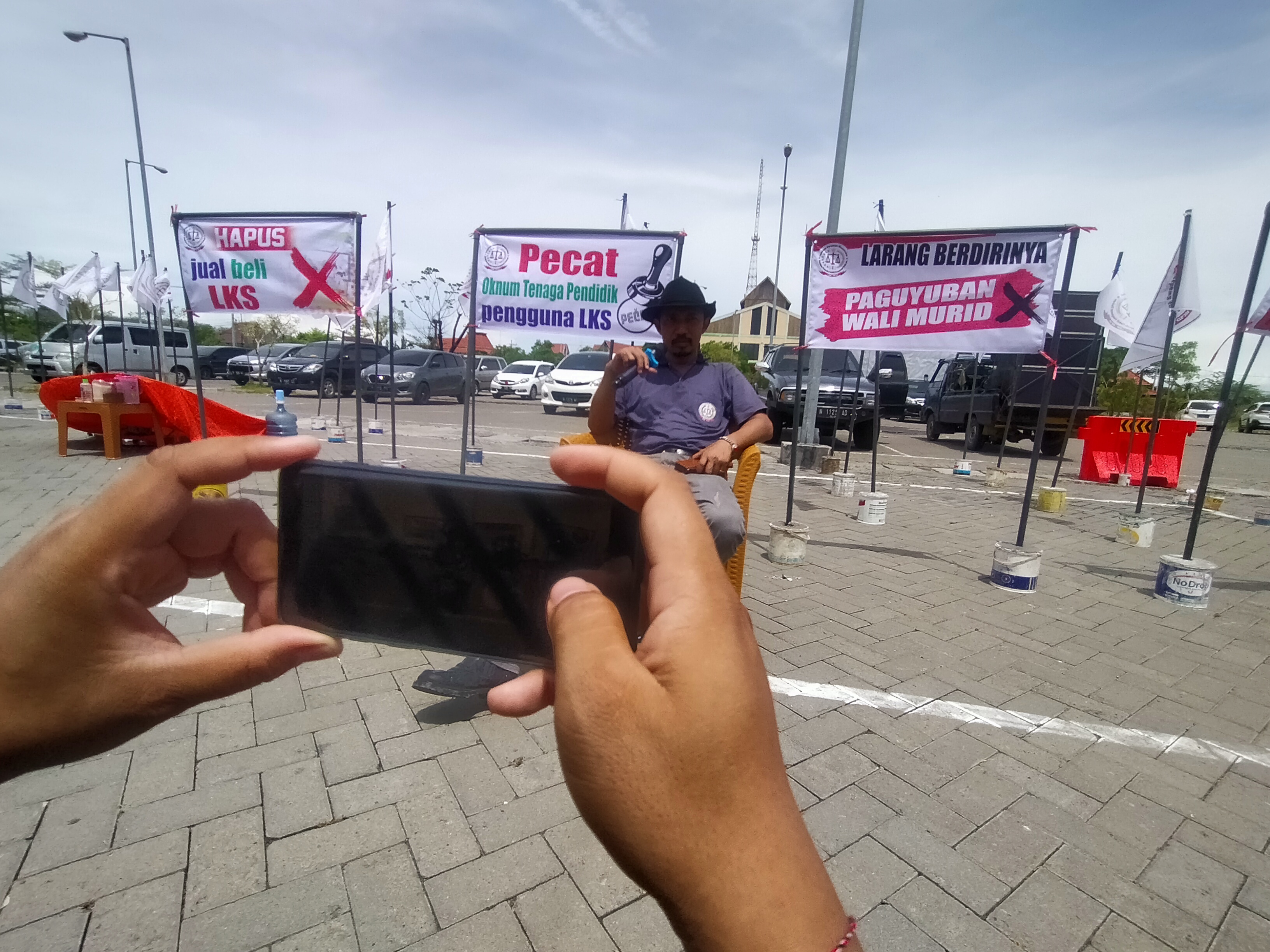 "Kita minta Dispendik membuat surat edaran menghapus LKS," kata Anjar Supriono, Ketua Umum GP3H saat orasi.