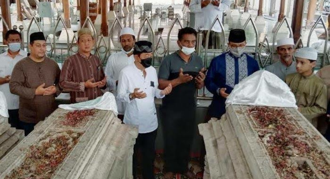 Anies yang berpakaian baju koko warna biru, berkopyah hitam dan bersarung terlihat khusyuk berdoa dipimpin Habib Saleh dan Habib Abdullah. Kendati demikian, kunjungan ke Makam Sunan Gresik tidak berlangsung lama, hanya sekitar 10 menit saja.