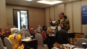 Prof Suparto Wijoyo, Wakil Direktur Pasca Sarjana Unair saat memberikan paparan di depan peserta[/caption]